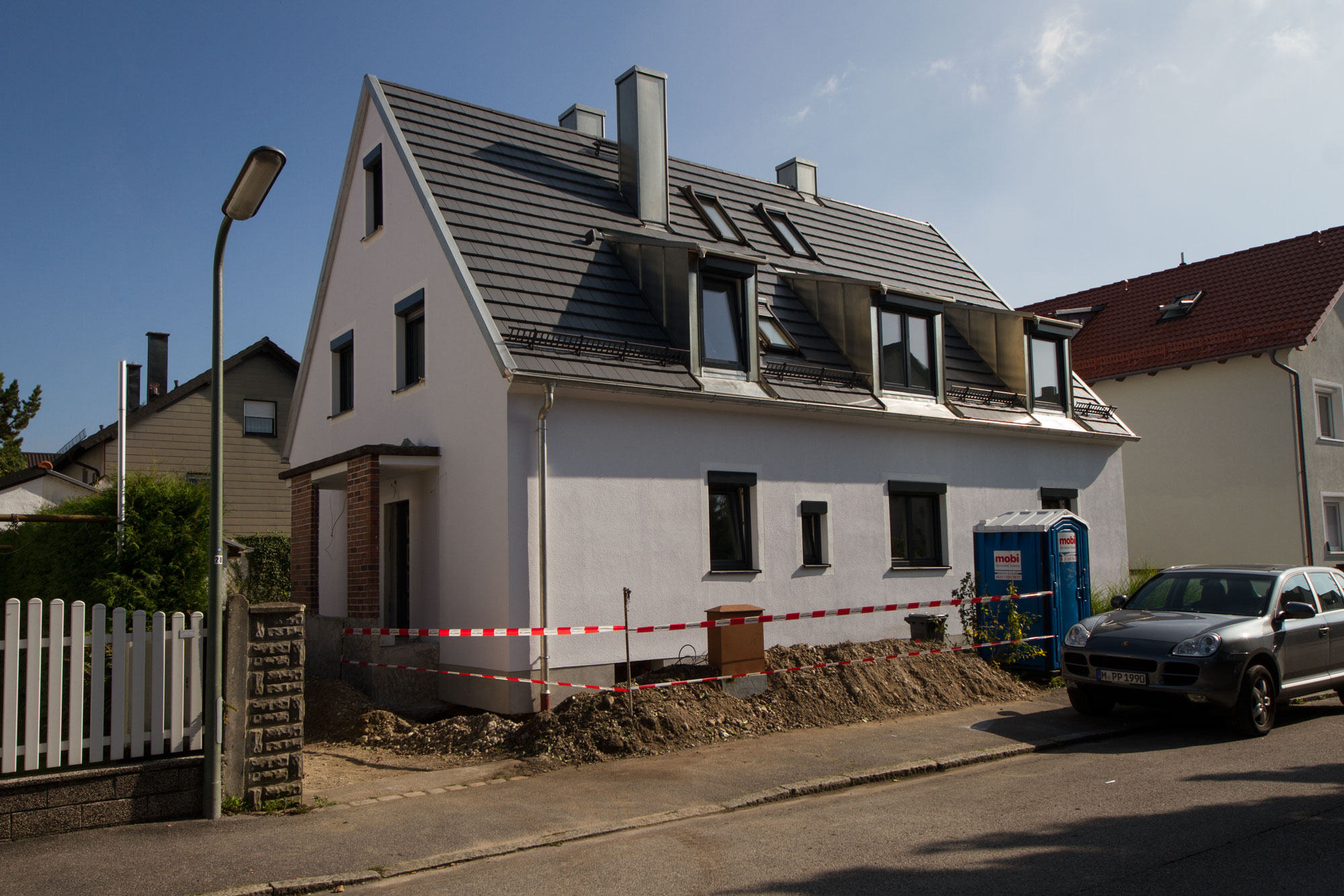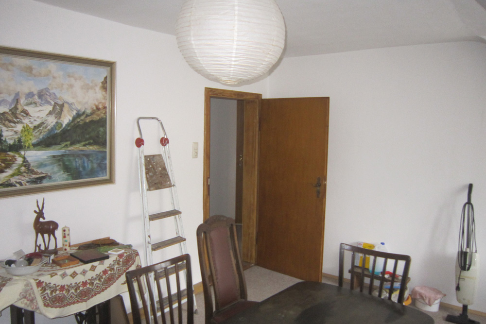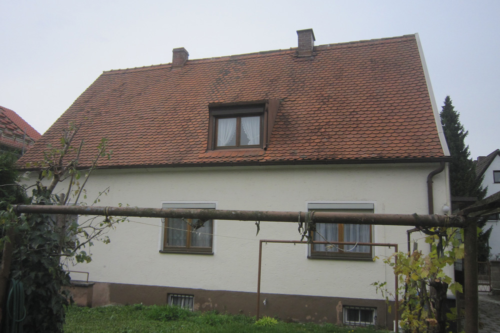 Das in den 1950er Jahren erbaute und in den 1970er Jahren angebaute Siedlungshaus am nördlichen Stadtrand wurde zunächst vollständig von einer asbesthaltigen Fassadenverkleidung, allen alten- Heizungs- und Sanitärleitungen und von der gesamten alten Elektro-Installation sowie von mehreren Schichten alter Bodenbeläge und Wandfliesen befreit.